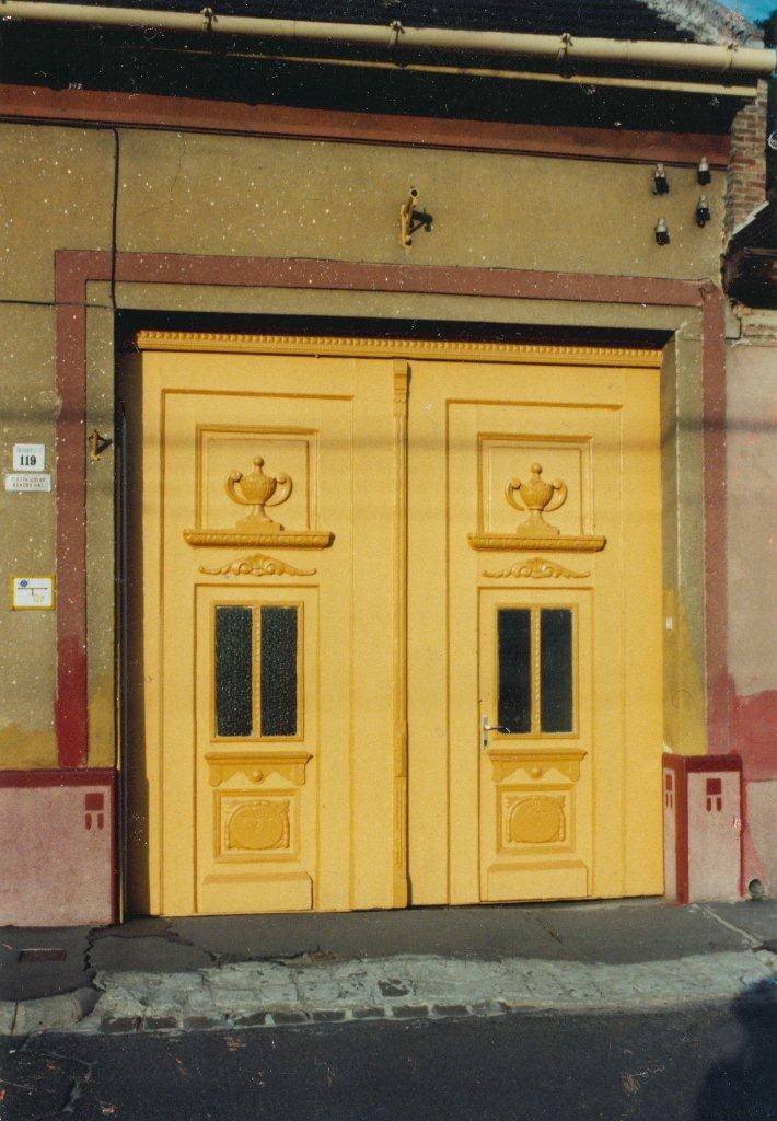 Soroksár óvárosában álló házak egyik jellegzetessége az utcai homlokzatra nyíló, úgynevezett vasárnapi ajtók felett kialakított, általában félköríves, /de van négyszögletes/ a tulajdonos monogramját viselő és figurális motívumokkal díszített savmaratásos üvegablak. Az 1910-es évektől elsősorban a tehetősebb soroksári gazdák házain jelent meg ez a díszítési forma.